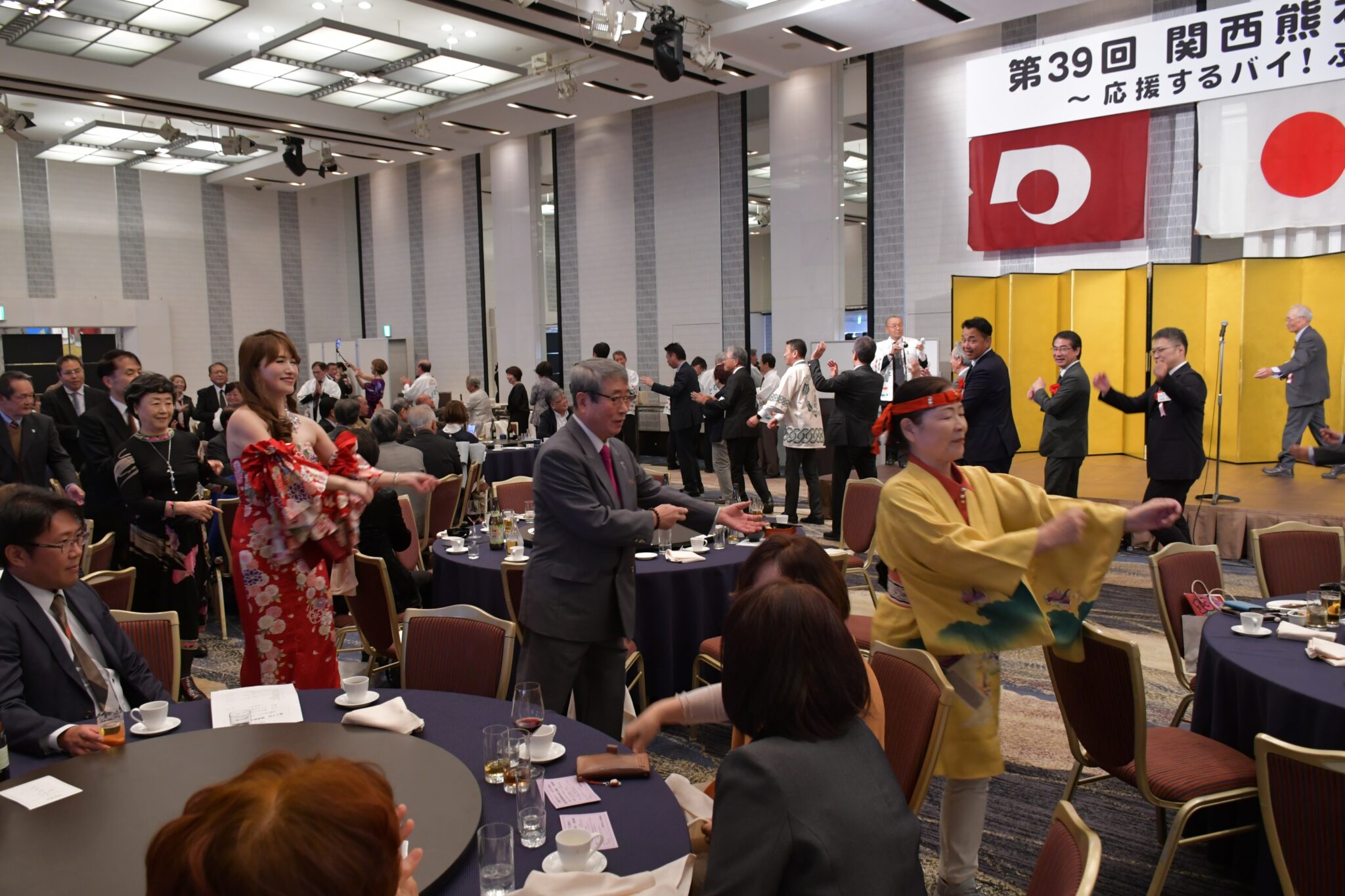 昭和59年(1984年)に本会が発足し、その翌年に第1回の「関西熊本県人の集い」が約700名の参加で新阪急ホテルにて開催されました。その後、東洋ホテルや太閤園などで開催され、ご来賓や会員の皆様とふるさと熊本を身近に感じつつ、楽しいひと時を過ごしてまいりました。初代の永田会長をはじめ諸先輩方のご尽力で今日まで素晴らしい会が続いております。