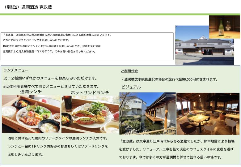 - 通潤橋放水観覧コース: 96,000円